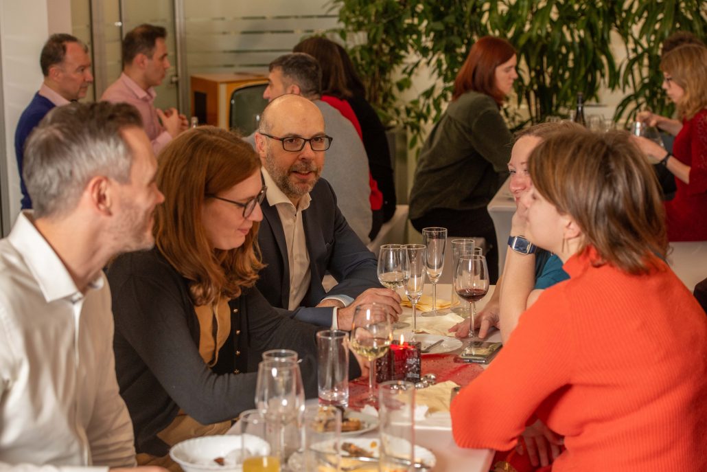 In den Räumlichkeiten, in welchen an fast jedem anderen Tag des Jahr gearbeitet, beraten und konstruiert wird, fand am 19. Dezember unsere bürointerne Weihnachtsfeier statt. Fast alle Kolleginnen und Kollegen von Buschina & Partner sowie jene von P+P nahmen zu Ehrung des nahenden Fests und vor allem der gemeinsamen Tätigkeit und den bearbeiteten Projekten des vergangenen Jahres teil.